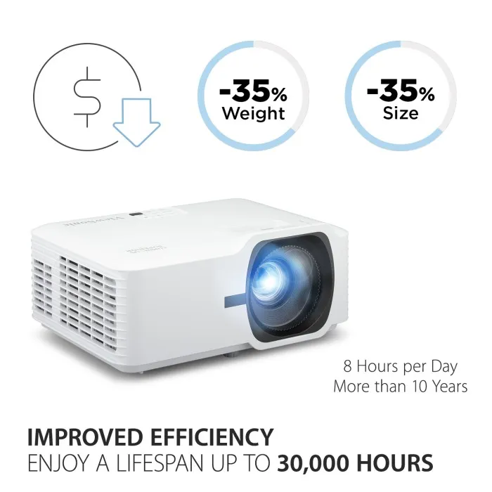 ViewSonic 5,000 Lumens WXGA Laser Projector with 1.3x Optical Zoom, H/V Keystone, 4 Corner Adjustment, 360 Degree Projection | LS740W